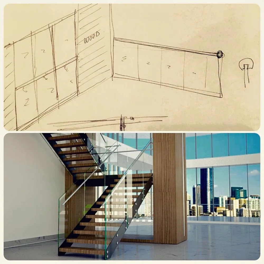 We provided 18 set L shape interior staircase and 800 meters framed tempered glass balustrade.