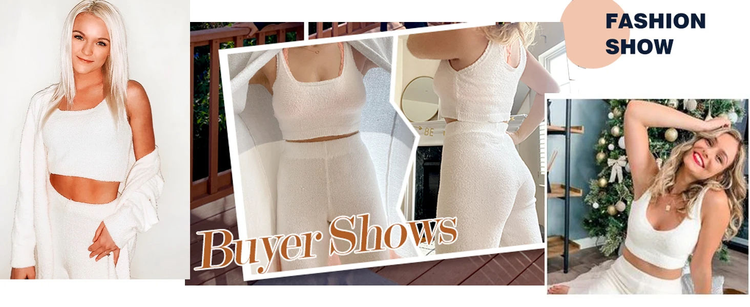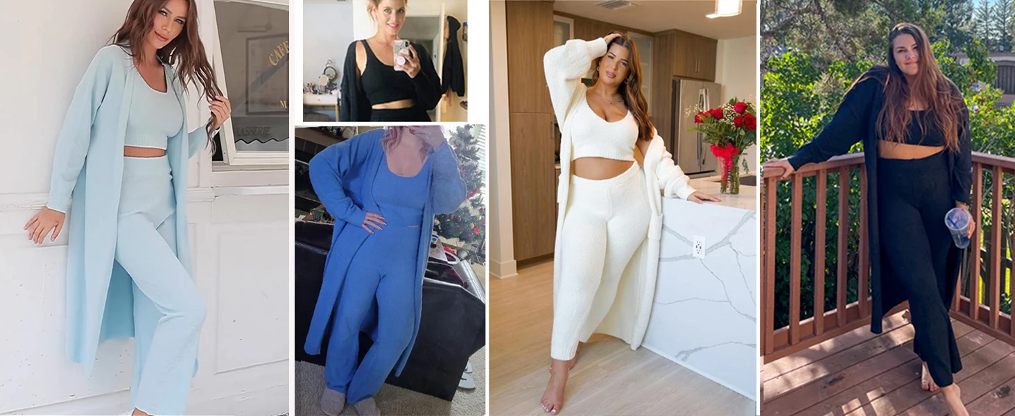 Feature | * Solid 3 piece outfits fuzzy fleece loungewear for women, soft, warm and fashion * 3 piece fleece set,crop tops+long pants+long cardigan lounge set * Sexy sleeveless tank crop tops with high waist long pants, wide leg pants * Loose fit open front long cardigan coat cover up,fuzzy pajamas set with Sherpa open front cardigan, make you feel comfy all day long * Fashion three piece fuzzy tracksuits suitable for sports,yoga, night club, party, disco dancing, home pj set, sleepwear |
