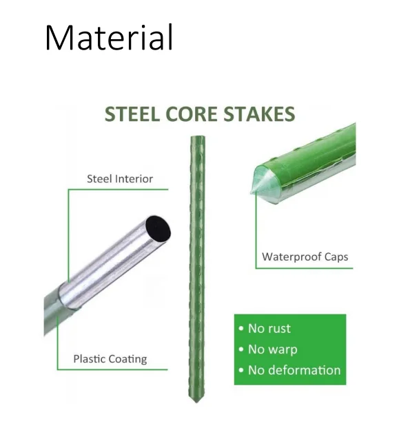 Application: support plant or tie nets for gardens and farms etc., Caps on both sides can help the stakes go into ground easily on one hand and tie ropes or nets easily on the other side.