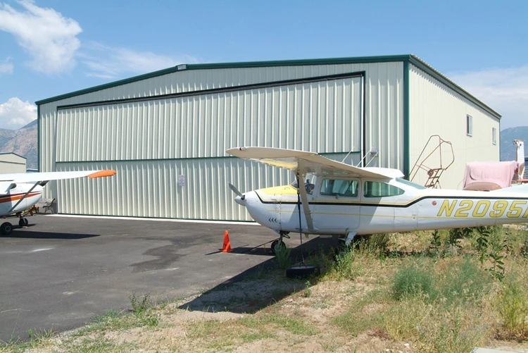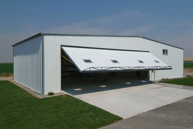 Steel structure hangar is formed by the main frame steel structure and secondary steel structure, for example, H beam, C purline, Z purline, tie rod, X brace etc steel components. Roof and wall is covered by panels, for example color steel sheet or insulate sandwich panel. And then install such as windows and doors etc. The steel hangar has the advantages of wide span, high strength, light weight, low cost, temperature protection, save energy, beautiful appearance, short construction time, good seismic performance, flexible layout, etc advantages