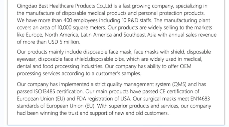 Certificate | CE EN14683 |
