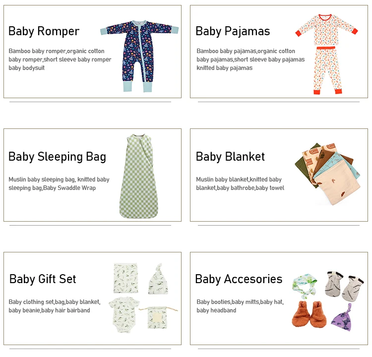 We provide customized services for our customers, and we can design and print according to their specifications. We offer a wide range of products, such as rompers, pajamas, sleeping bags, T-shirts, hoodies, sweatshirts, and more. We use high-quality organic fabrics, such as bamboo, organic cotton, hemp, and more, which are eco-friendly, comfortable, and durable.