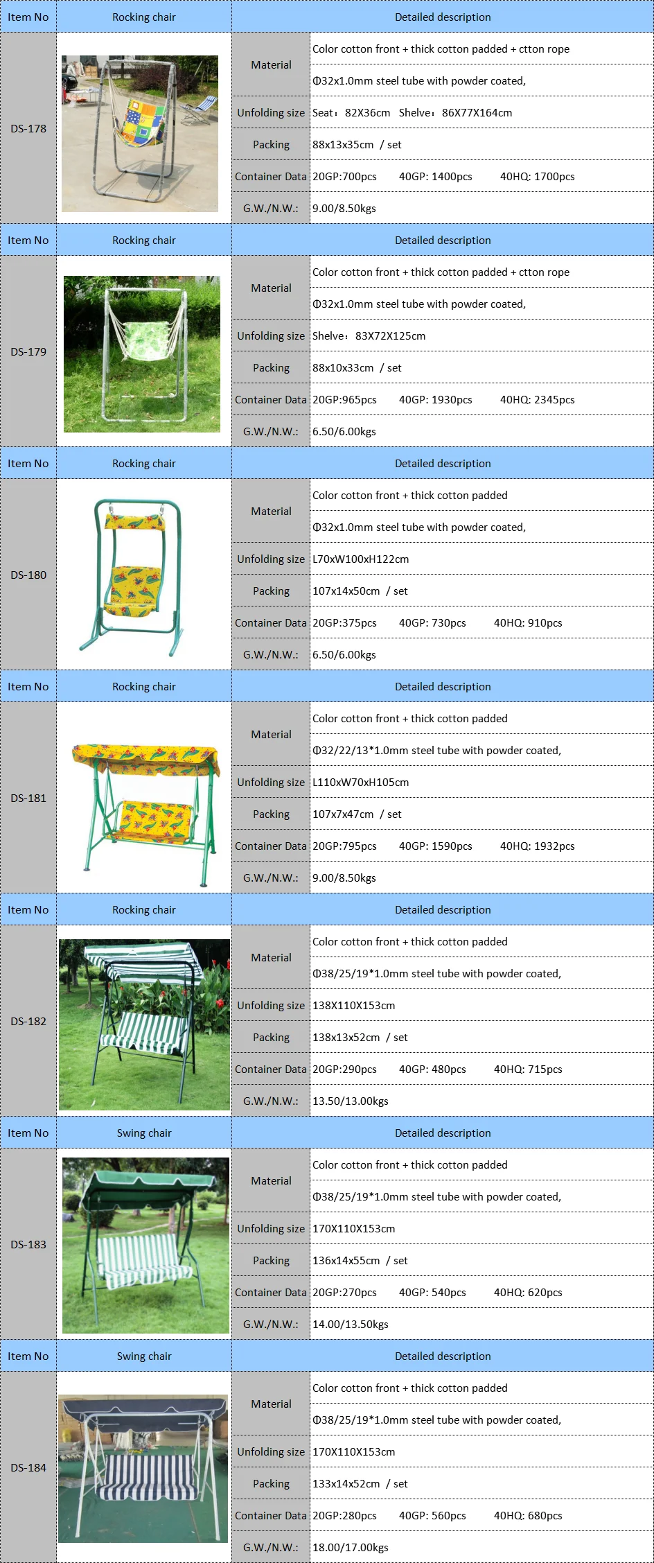 Frames | Φ32x1.0mm steel tube with powder coated | |||||