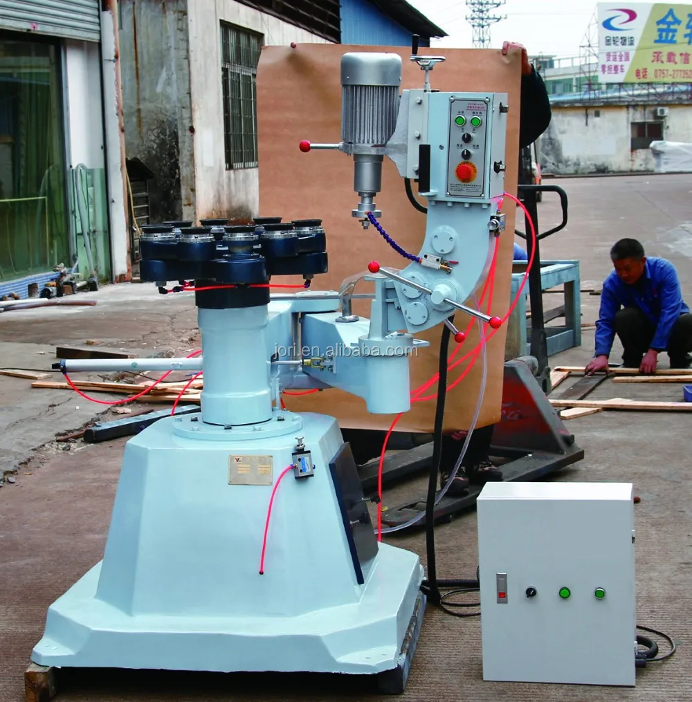 ZDYM1320 glass shape edging machine's base, swing arm, five-star suction seat all do by casting, it is suitable for processing perimeter and bevel edges of round and oval shaped glass. It uses satellite wheel for rotation, the wheel rotation speed can be adjusted during work. This machine can also be used for semi-auto grinding of simple special shaped glass. When grinding peripheral edges, it can use three grinding wheels for coarse and fine grinding and polishing. When grinding bevel edges, it can use a bowl shaped grinding wheel, the grinding head can be tilted back, and the bevel angle can be adjusted for end face grinding.