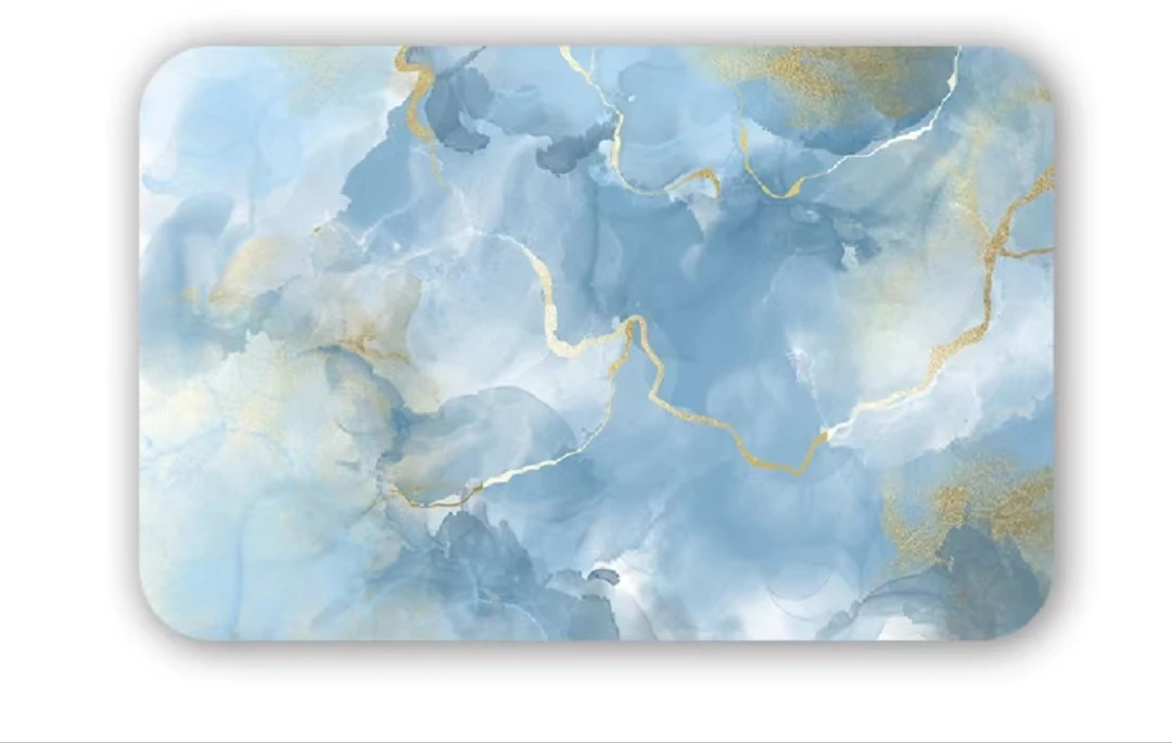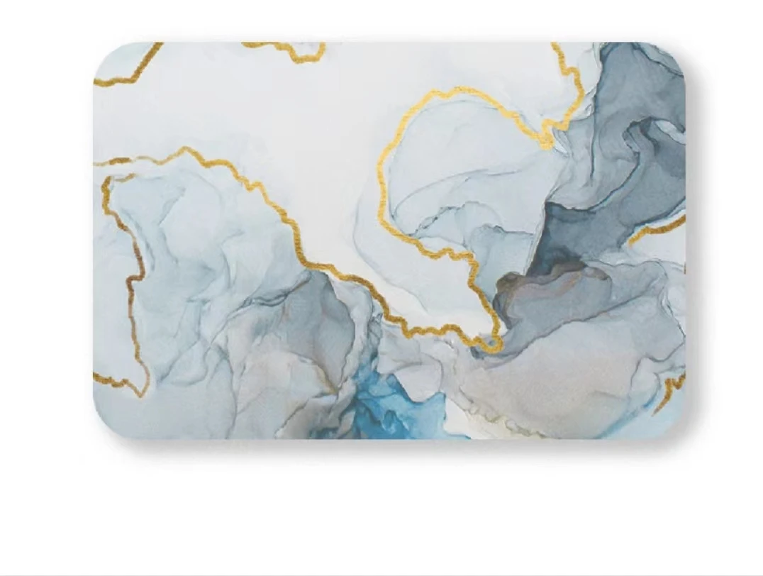Eco Friendly Anti Slip Anti Mould Super Absorbent Bath Mat Modern Printing Marble Design Custom Size Diatomaceous Earth Bathmat