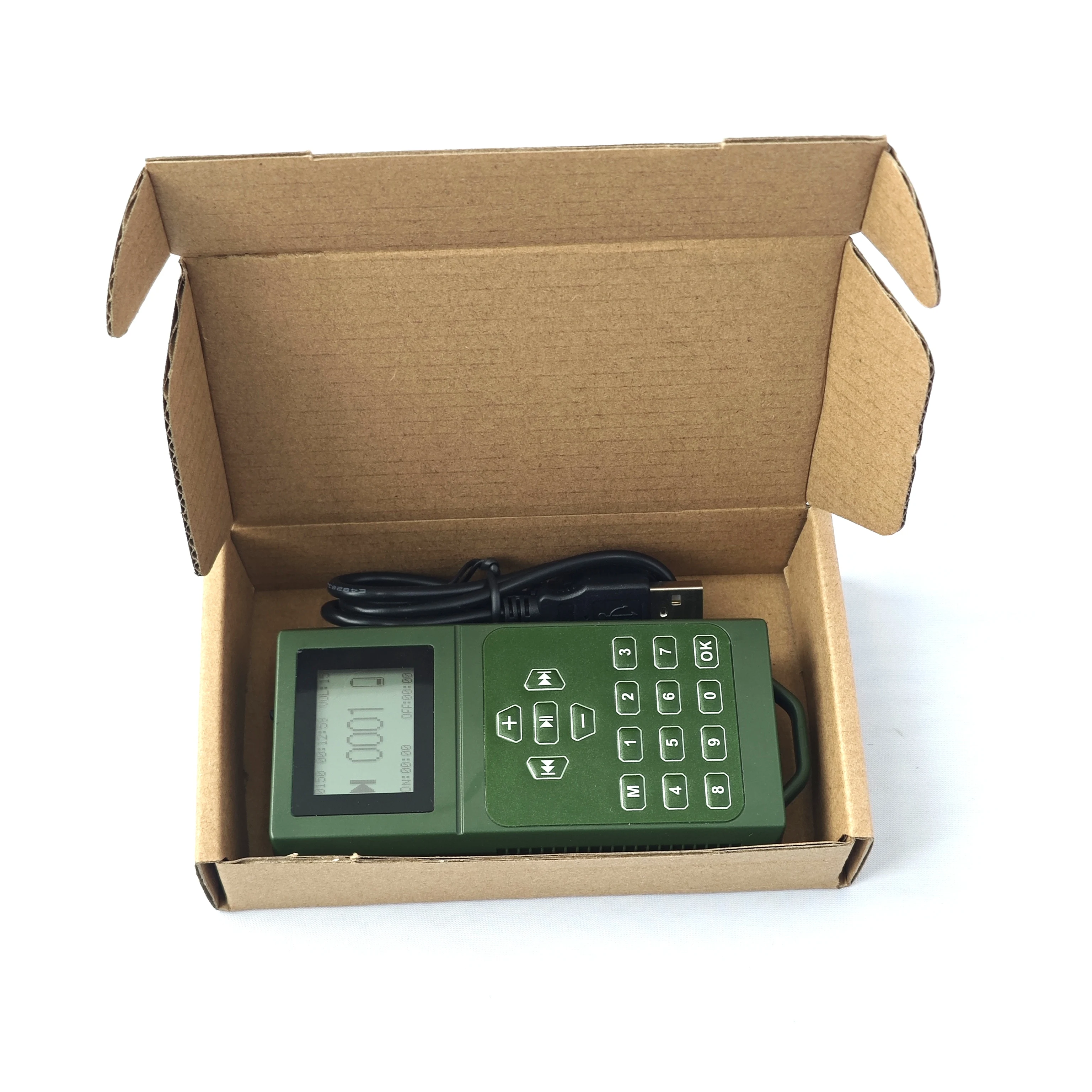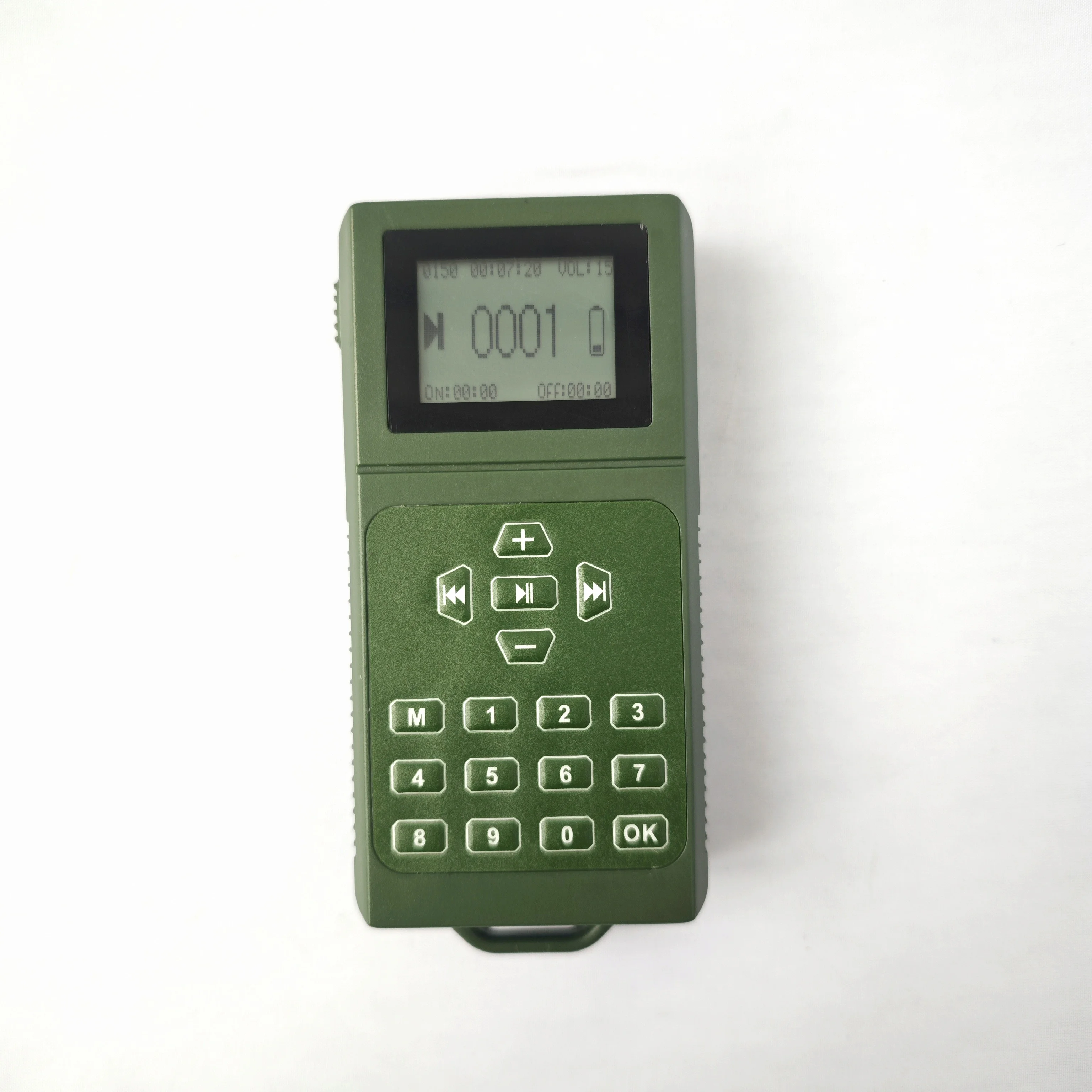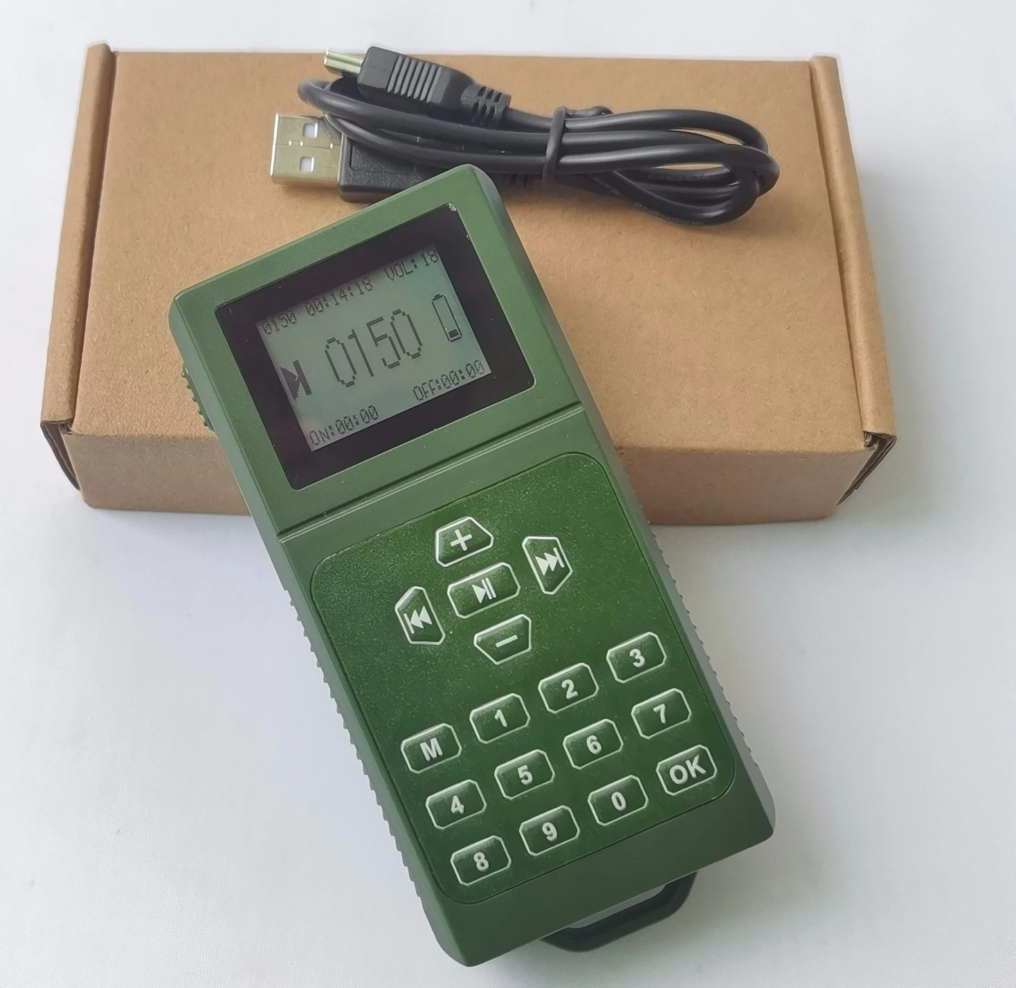 1. Built-in speaker 20w 130dB, support external a speaker 5v. 2. Use battery AA*3(not included). 3. Timer on/off without memory. 4. 150 birds songs. 5. LCD 1.5 inch display.