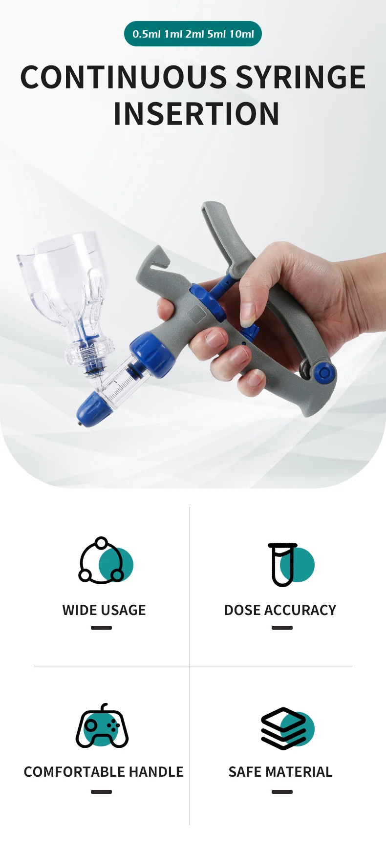 2ml Bottle Connected Automatic Vaccine Syringe Vet Dosing Veterinary Continuous Syringe