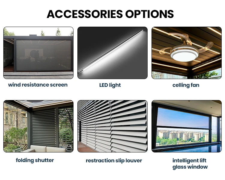 Materials Details | 1,Post: aluminum alloy 6063 T5 2,Blades : aluminum alloy 6005 T53,Beams aluminum alloy 6063 T5 4,Gutter :aluminum alloy 6063 T5 |