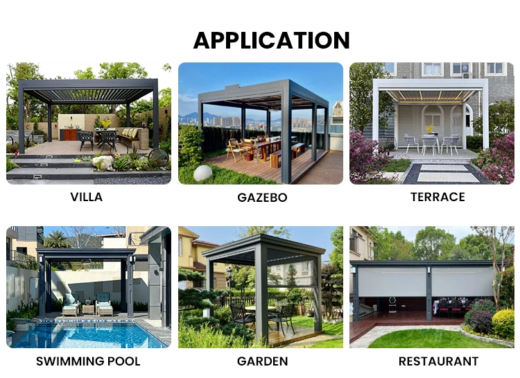 application | outdoor sunshade,villa, house space extending,gazebo,terrace,swimming pool,garden,decking and so on |