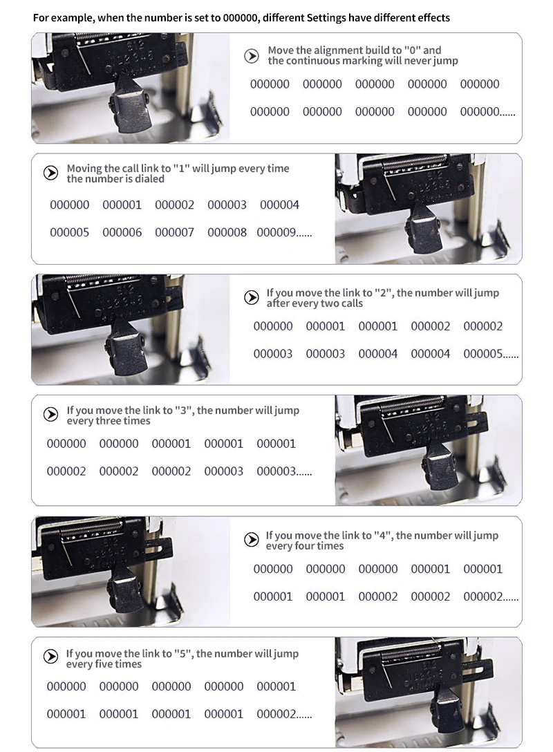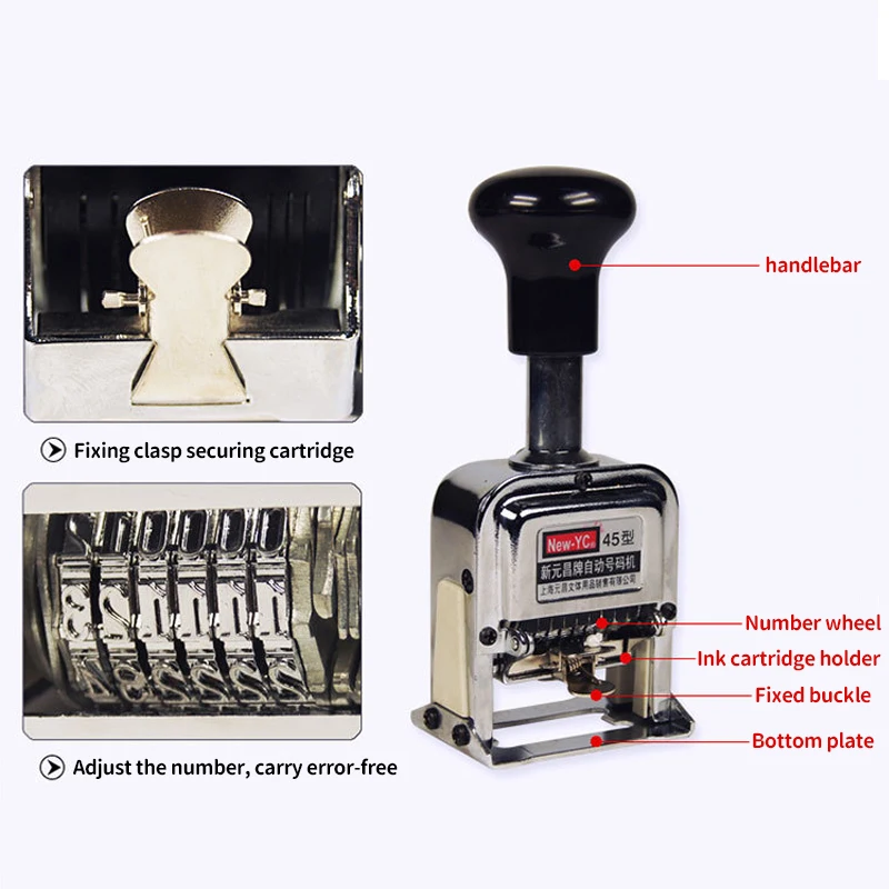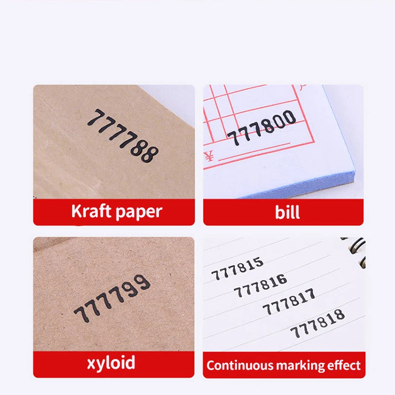 Features | metal structure, each word wheel with "0-9" numbers can be adjusted to achieve automatic inking, automatic jump, |