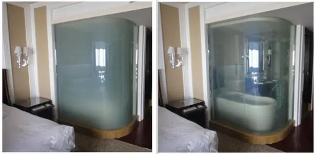H) Allows total privacy or clear viewing;