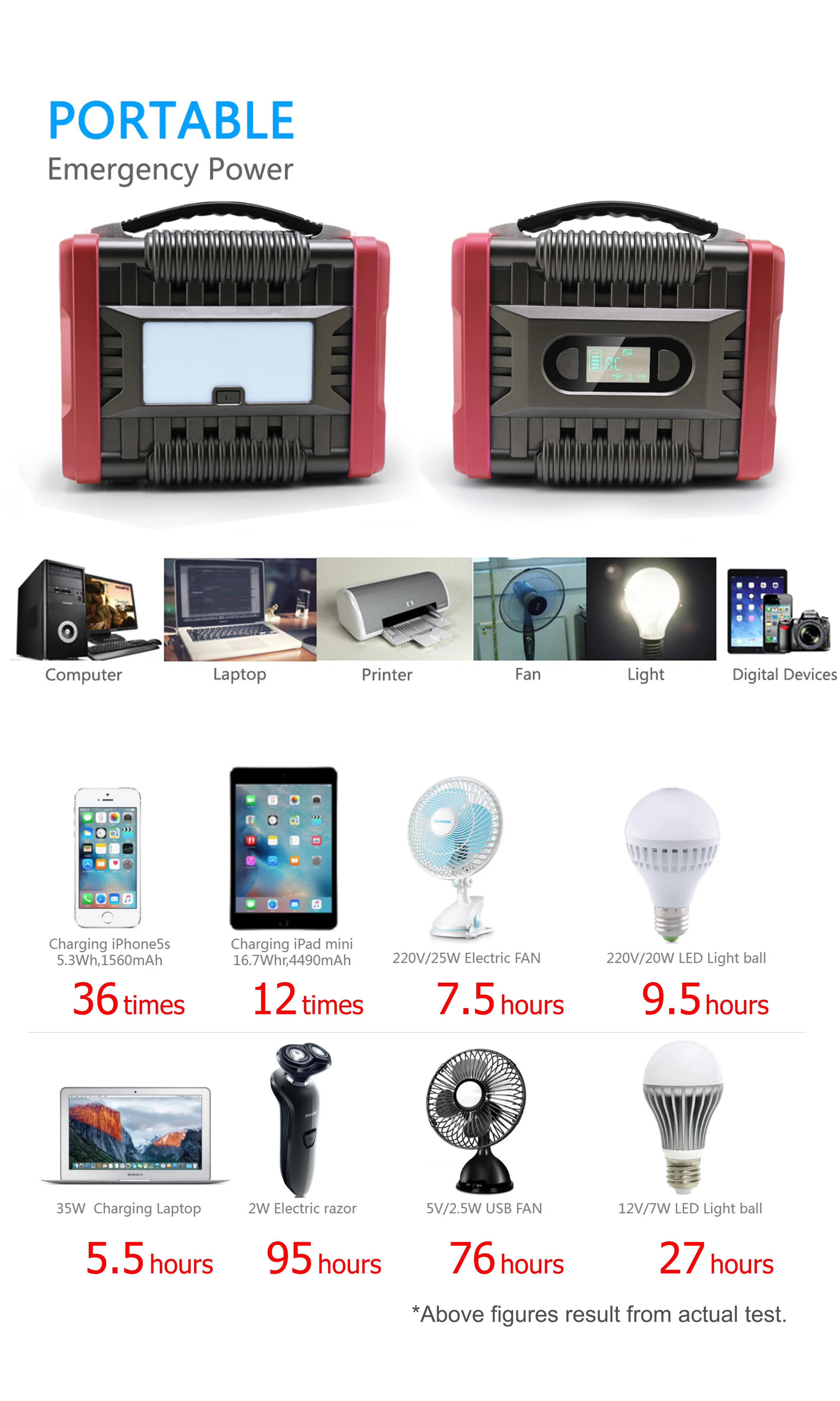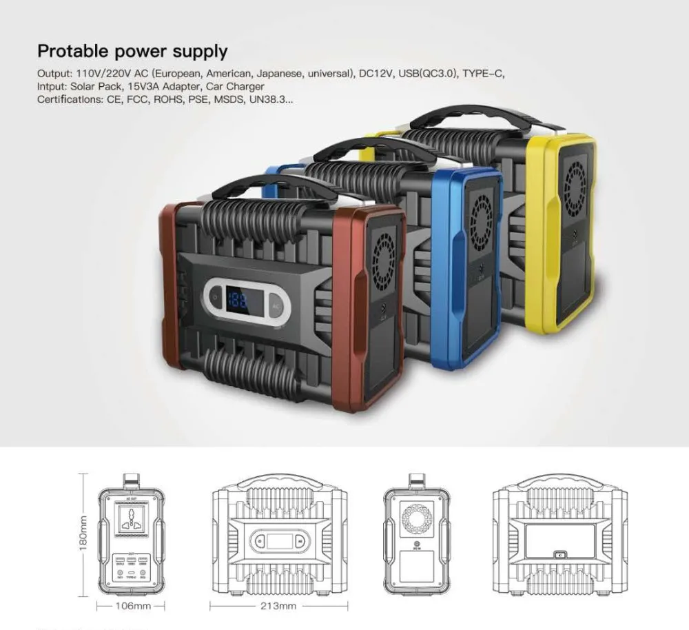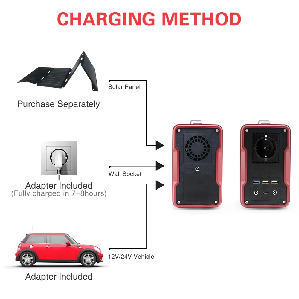 Package attachment | 1 x AC energy storage 1 x 15V/3A adapter 1 x car charger 1 x cigarette lighter socket 1 x manual | ||||