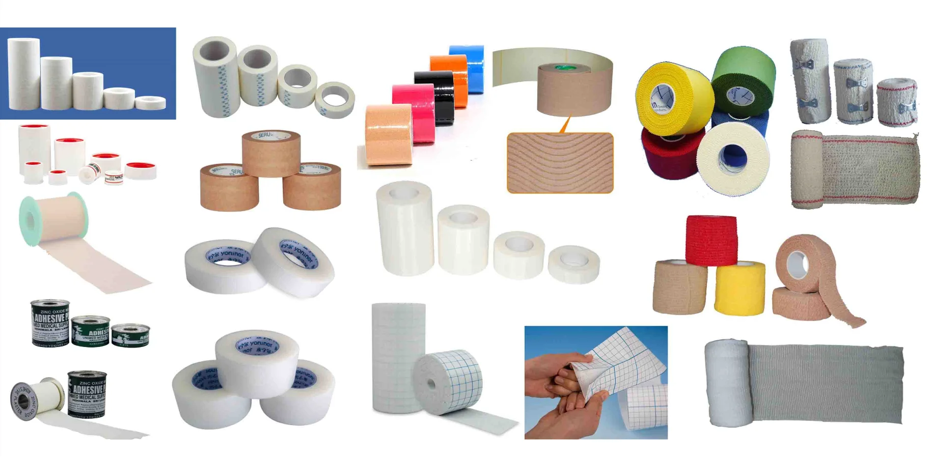 The main products of our factory are medical elastic bandages,crepe bandages,surgical tapes,first aid kits, as well as other medical disposable series. have passed ISO and CE.