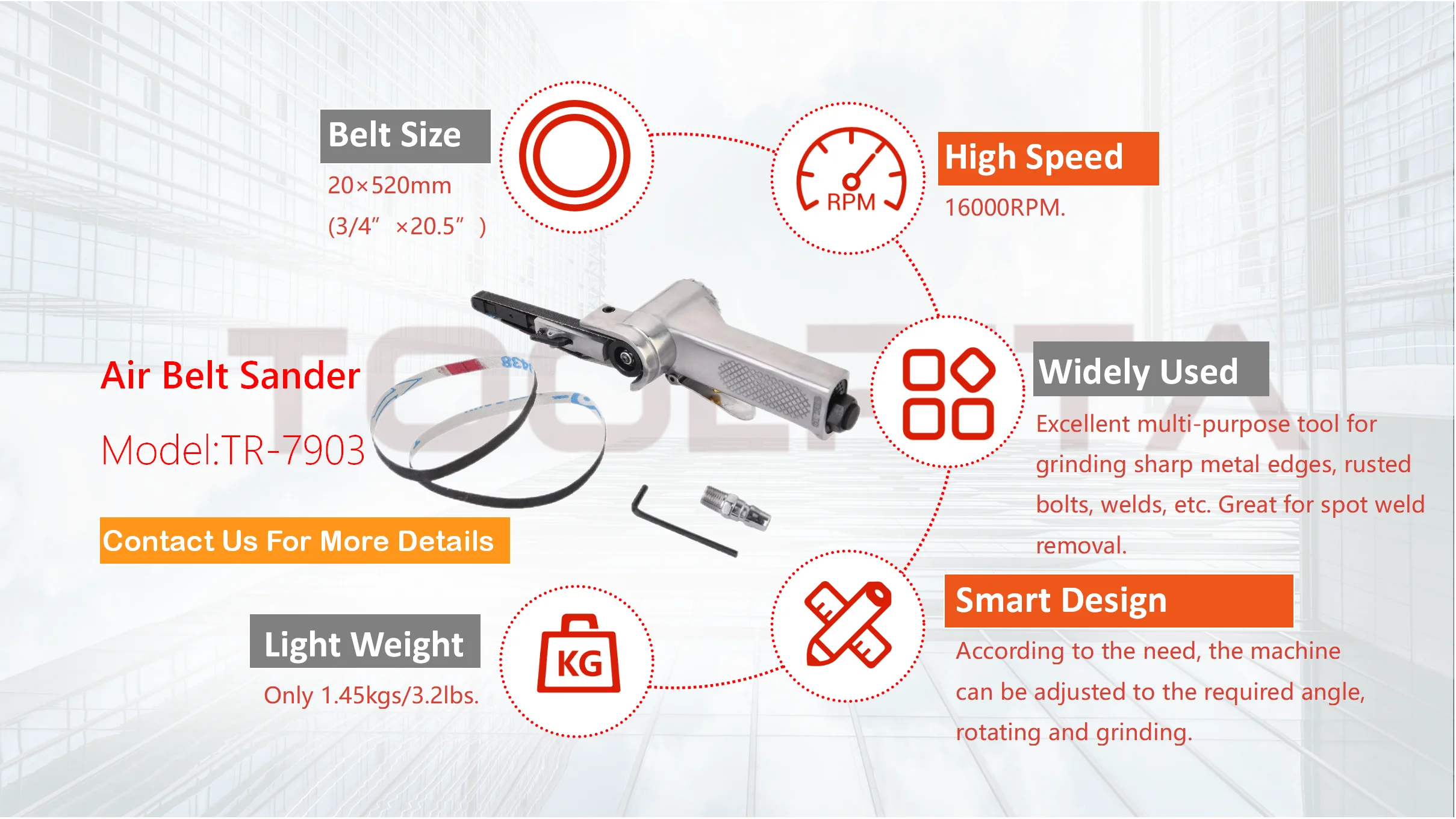 TOOLRITA Pneumatic Belt Sander 20*520mm High Speed Air Belt Sander Pneumatic Polisher