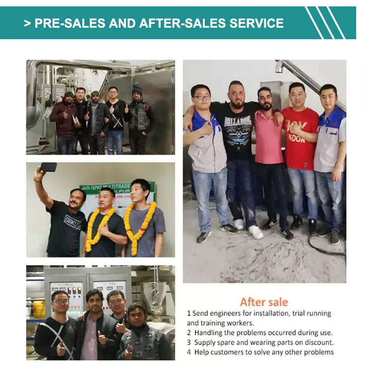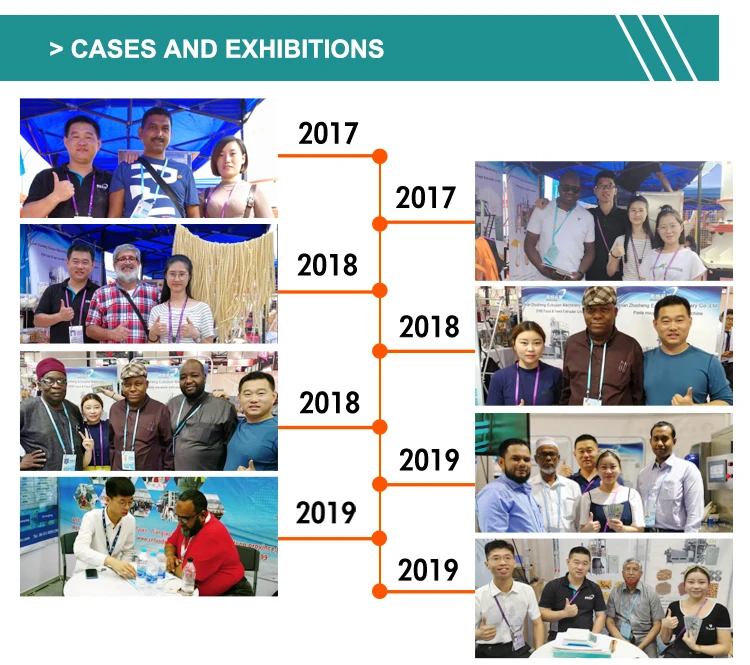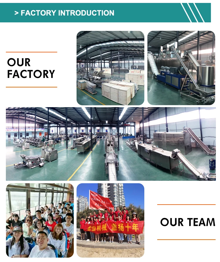 Q1. Are you a manufacturer or a trading company? A: We are a professional manufacturer of food & feed extrusion machine. We have own factory and R&D department. SGS has certified our company on site. Q2. What is your payment terms? A: Strongly recommend to use Alibaba’s Trade Assurance. T/T :30% prepayment,70% before delivery. L/C at sight is available. Other payment is negotiable Q3.Do you offer guarantee for the products? A: Yes, we offer 1-2 years warranty to our products. Q4. What about the lead time? A: Regular products:20-30 working days Customizable products:30-40 working days. Q5. Can you provide food or feed formula ? A: We can provide basic formula for produce the food etc. And help customer to produce new products according to customer’s formula. Q6. What after-services do you provide? A: Send engineers for installation, trial running and training workers at customer's site. Handling the problems occurred during use. Supply spare and wearing parts on discount. Help customers to solve any other problems .