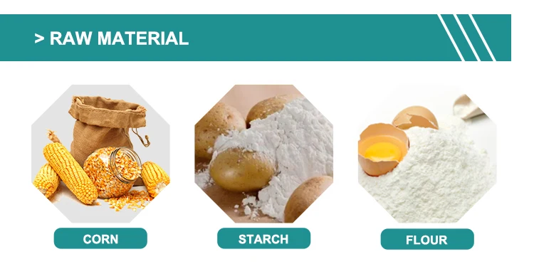Automatic corn flour tortilla chip production line adopts corn, rice, wheat, oat, barley etc as ingredients to make puffed snack. Through friction of screw and barrel, the grains are cooked in the extruder. Forming is at the die face cutter. The product shape is determined by a combination of the die aperture, including ball, tube, stick, ring, fruit loop, star, wheel and flower etc.