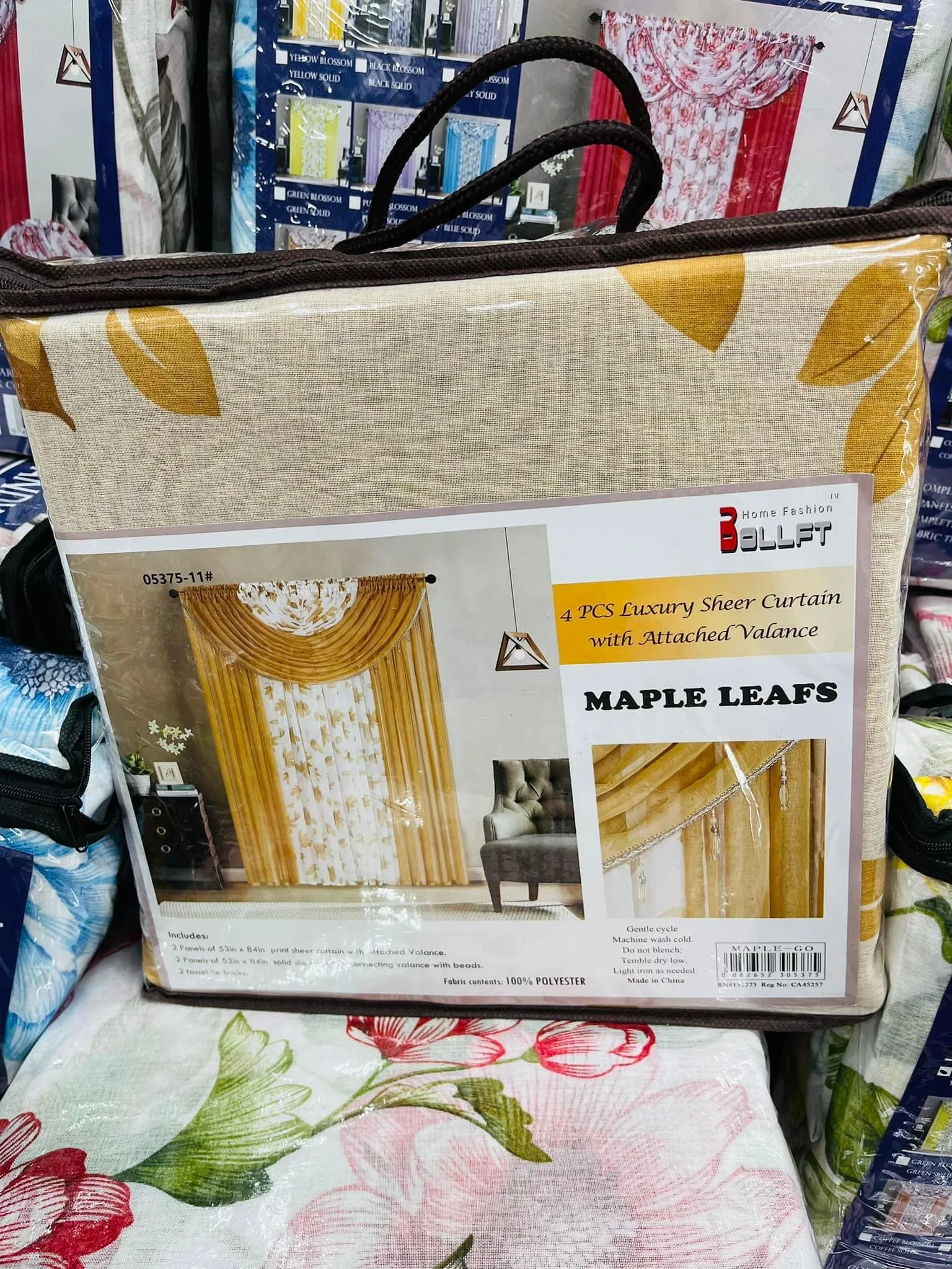 One set may include: | Sheer Curtain Panel Set with 3 Valances, Crystal Beads Attached in 4-Piece 54"x 84" Panels | ||||