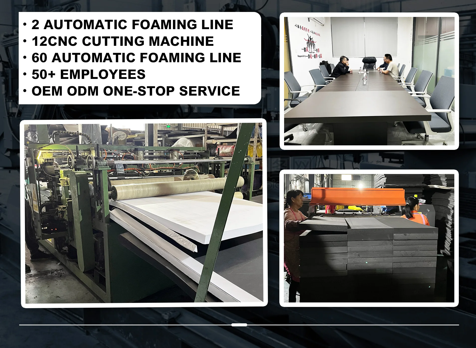 Our company has dozens of sets of EVA sponge foaming equipment, a factory area of over 20000 square meters, 150 employees, and nearly a hundred deep processing equipment! Our company independently completes everything from raw materials to finished product
