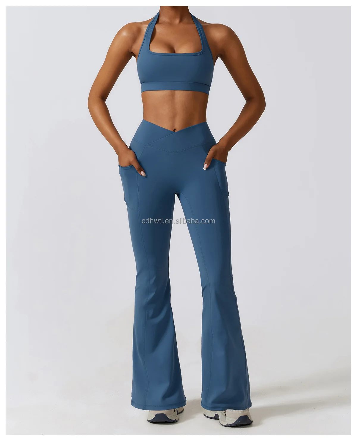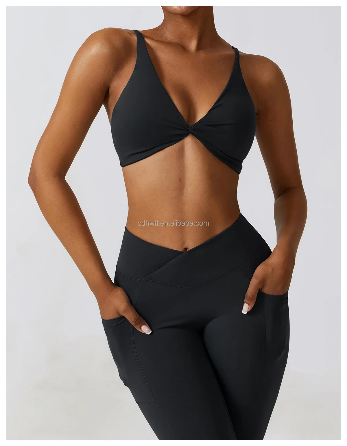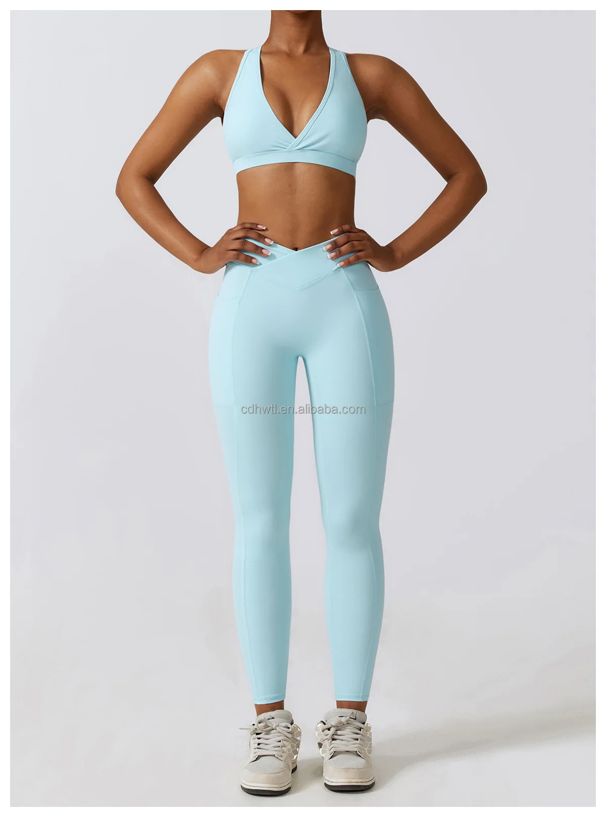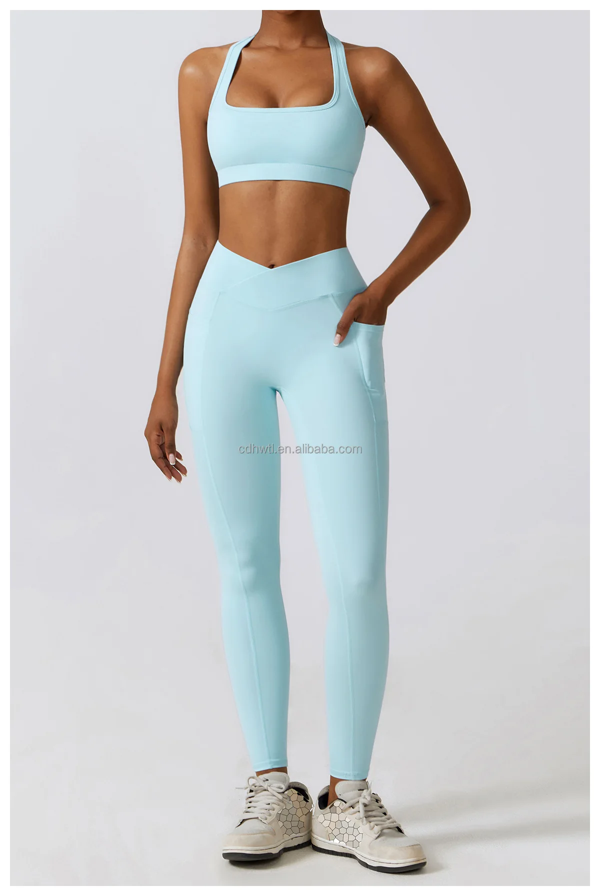 Product name: | Open Back Hollow Sports Bra Crop Workout High Waist Compression Tights Yoga Pants Leggings with pockets Gym Fitness Set Women |