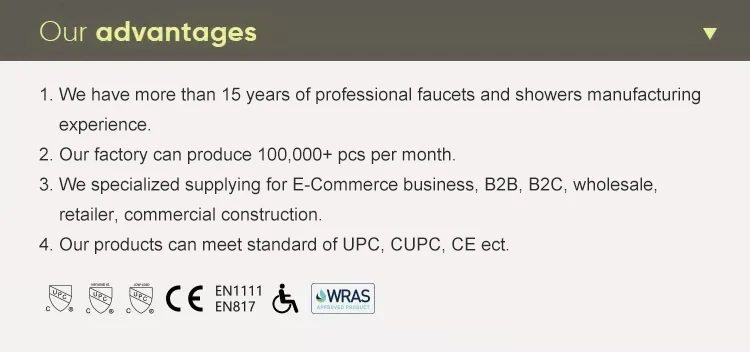 Water Flow | Basin faucet 1.5pgm@60psi /Kitchen Faucet 1.8gpm@60psi/ shower 2.5gpm@80psi(Can be customized according to customer requirements) |