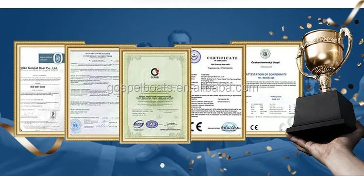 Gospel Boat has passed ISO 9001 and CE Certification and has great production capacity which is more than 300 boats every year. Gospel boats are exported to many countries and areas such as Australia, New Zealand, Germany, Denmark, Italy, USA, Canada and get high reputation from our customers all over the world.