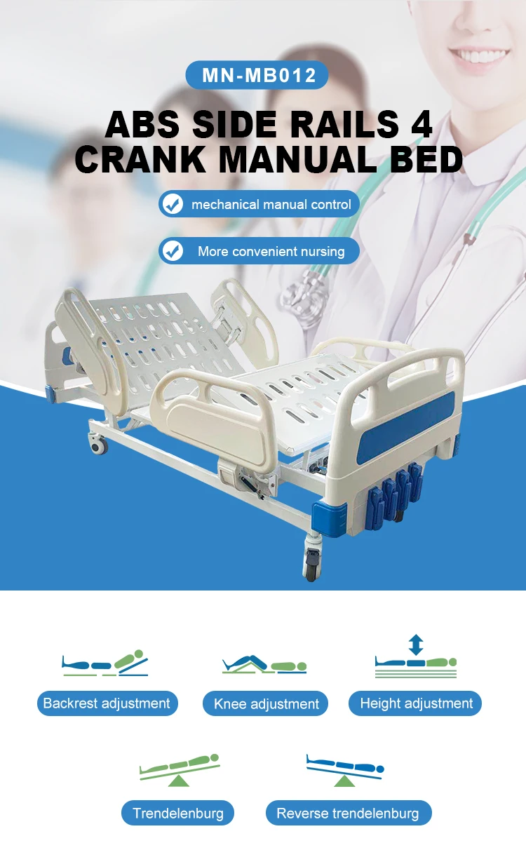 MN MB012 Home Care Low Price Hospital Bed 5 Function ABS Side Rails 4 Crank Manual Patient Nursing Bed