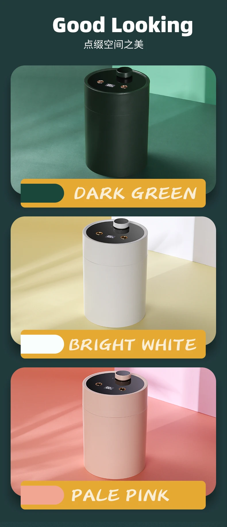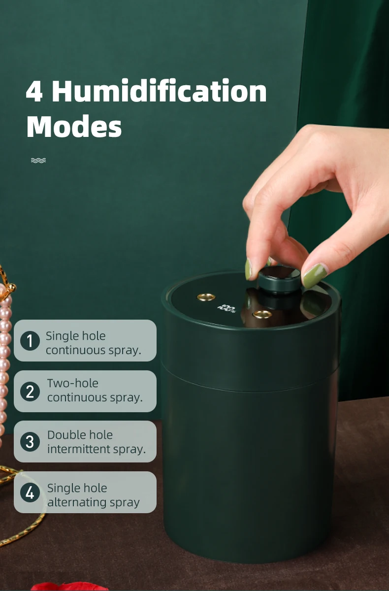 1. The product is with a mirror panel, high-end effect. 2. The product has double mist outlets, and the spray modes can be turned on and adjusted by the switch knob. 3. The product adopts a considerate design and is equipped with a power display screen, so you can check the power volume at any time. 4. The product is equipped with a water level probe, which will automatically cut off the power when there is no water.