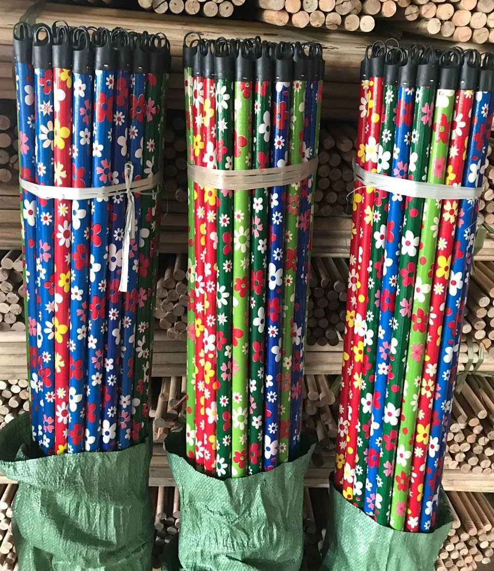 ITEM | Ero-friendly mop stick broom handle escoba flower design PVC coating wood broom stick hot sales india broom handle |