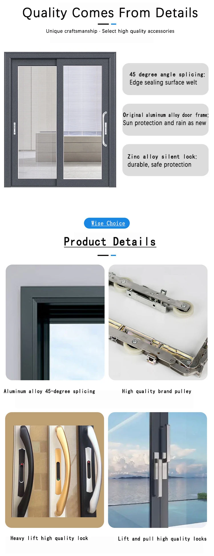 A )Sliding door looks ugly with single glass.There is a wide space for glass, if you use single glass, we will fill so much silicon in it.