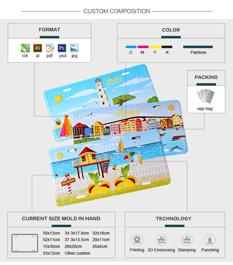 Item | metal car plate | MOQ | 300pcs each design | ||