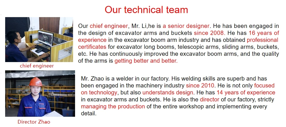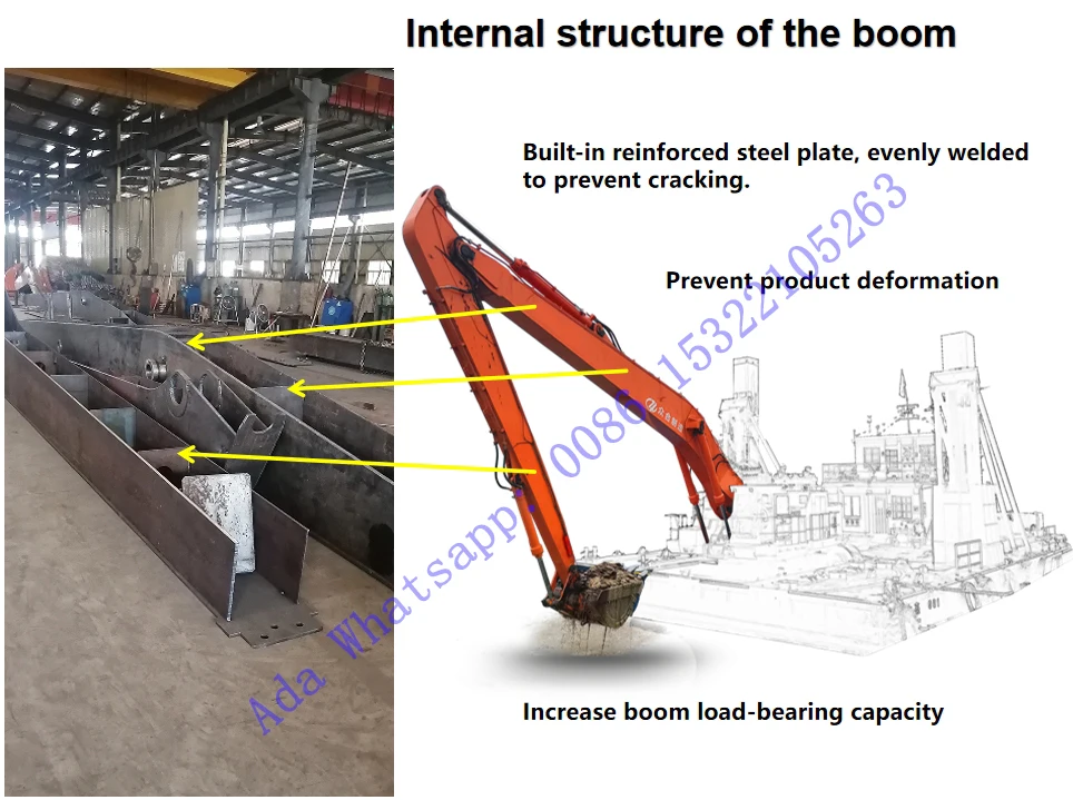 1. The sliding arm is used to dig deep wells, foundation pits, tunnels, sewage pipelines and other municipalities. 2. Our company was established in 2018 and has more than 6 years of experience. The production line engineers have more than 10 years of data and experience to design and customize long arms for excavators of various brands. 3. Suitable for all excavator models, OEM services are also provided. 4. Advanced manufacturing process, technology meets global standards. 5. We have all the installation dimensions for most excavators, and we can customize this long arm for your excavator. 6. Before welding, we use a large milling machine to mill (taper processing) the edge of the steel plate. Therefore, the welding can enter the inside of the steel plate, giving the structure higher performance. And there are reinforcement plates inside to make it stronger. 7. If necessary, additional pipes can be added to accommodate some additional applications. 8. The arm cylinder of the long boom, you can use your original arm cylinder to save costs, if you need an arm cylinder, we can also prepare it for you. 9. Some parts can be reinforced with thicker plates or overlap another plate for heavy-duty applications. 10. Welding is shielded gas welding, the shielding gas is a mixture of 80% argon and 20% carbon dioxide. This is the gold standard of shielding gas. 11. Before welding, we use a large milling machine to mill the edge of the plate. So the welding can go inside the steel plate, making the structure have higher performance. 12. We can customize the arm for various excavators according to your requirements. Just tell me your requirements. 13. If you need, some parts can be reinforced with thicker plates or overlap another plate for heavy-duty applications, just tell me.