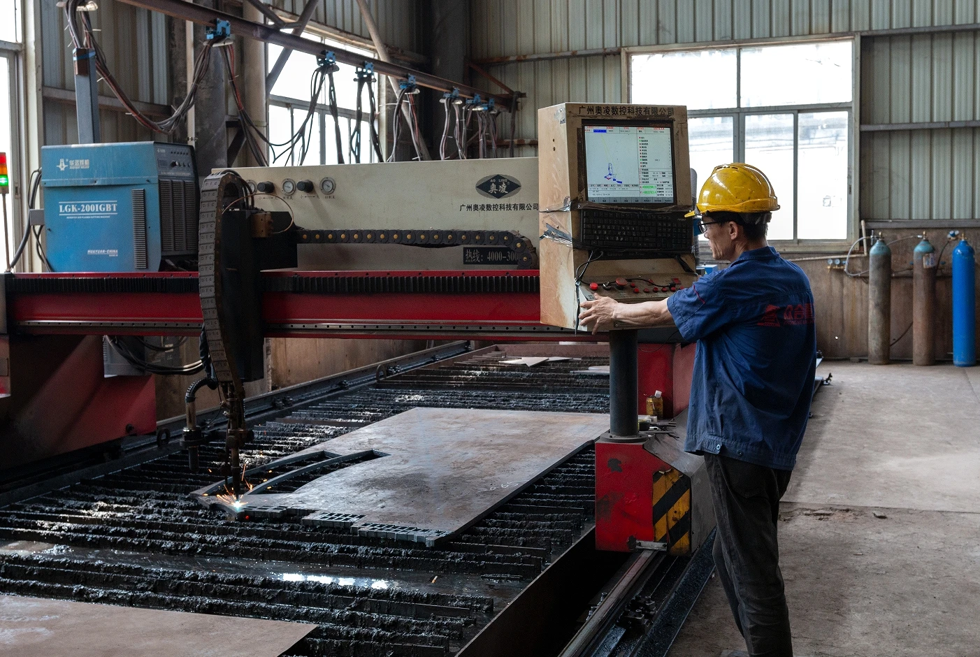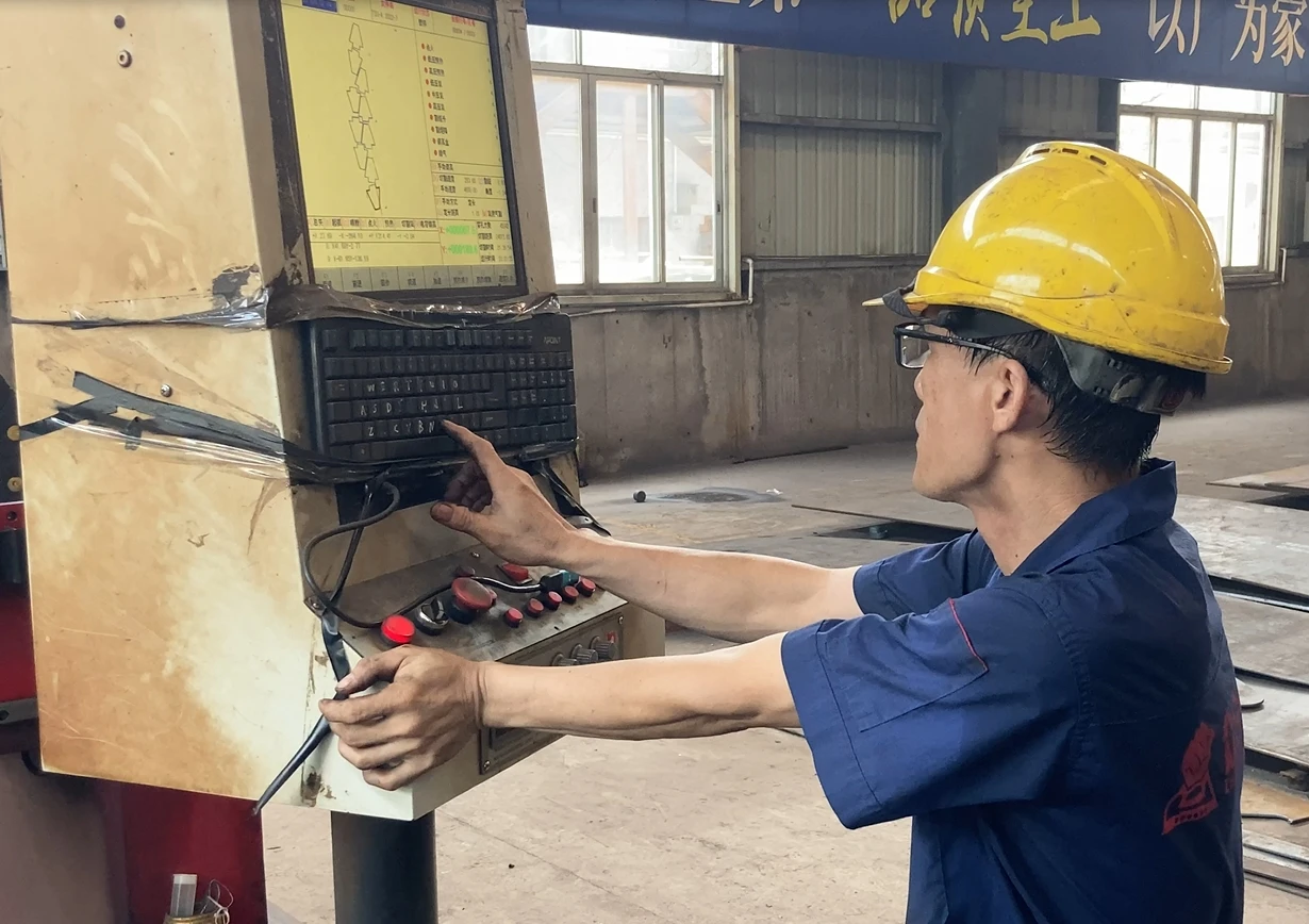 Plates less than 30mm thick are plasma cut, while those over 30mm are flame cut. Plasma cutting deformation is 0.1 mm.CNC plasma cutting with less panel deformation.