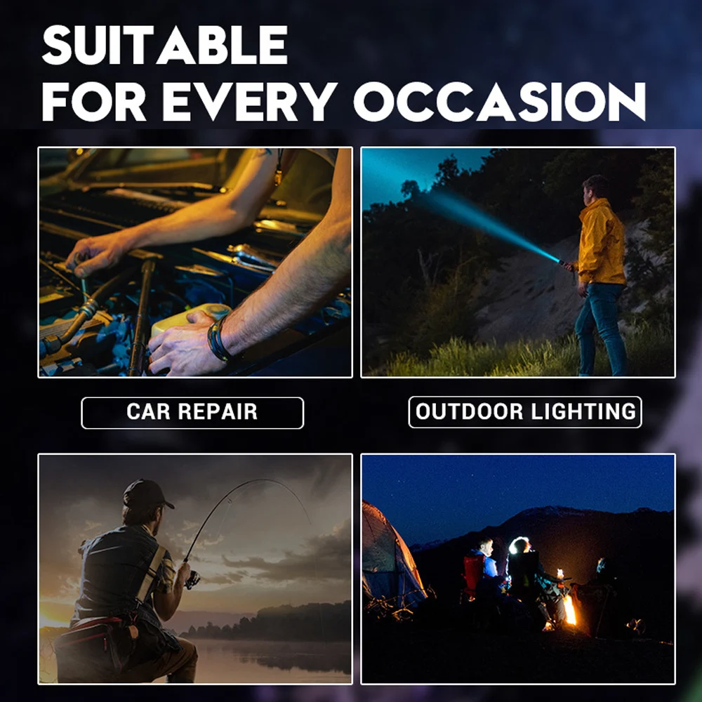 A76 20000 Lumen High Power Flashlight Side LED Red Light Work Lights Zoom Zoom Focus Rechargeable Hand Torch with Power Display