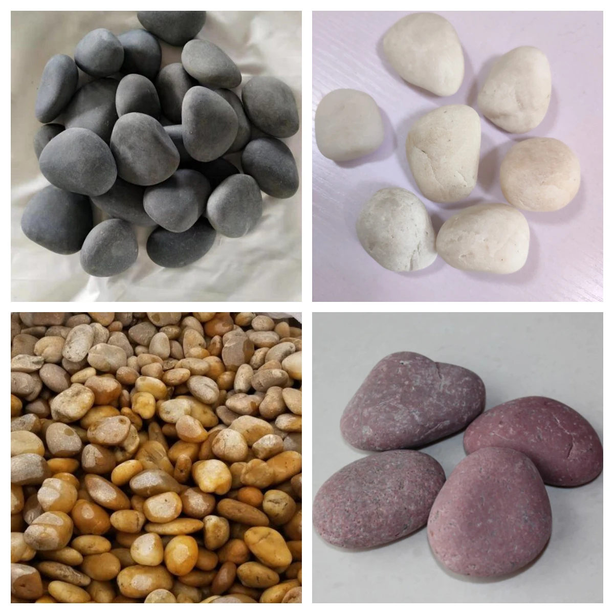 We have advanced polishing technology and complete quality control system and focus on producing and exporting all kinds of stone, glass and other products. With high quality pebble resources as base material, after fine selection and different degrees of polishing, we produce a variety of products: natural stone, A grade stone, A+ grade pebbles, high polished AA grade pebbles, mini pebble gravels, dyeing pebbles, dyeing gravels, machine-made stone, pebble mosaic, glass mosaic, marble mosaic, engraved stone, natural agates and so on. These products are widely used in construction, decoration, landscape gardening and aquarium layout design.