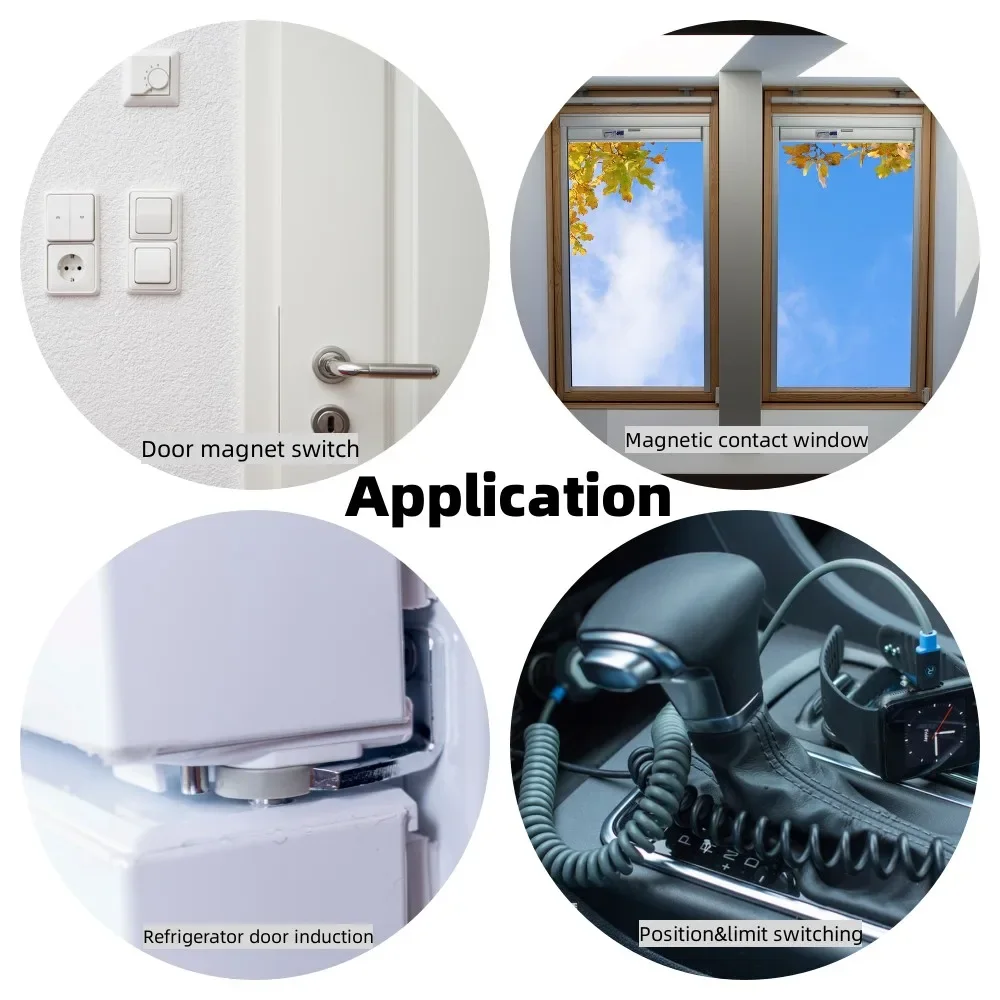 Function | The proximity switch consists of two parts: the smaller parts for permanent magnets, inside has a permanent magnet, used to generate a constant magnetic field, the magnetic door is the main body, inside it there is a normally open type dry reed pipe, when the permanent magnet and reed pipe very close (less than 5 mm), door magnetic sensor is in a state of work waiting for you, when permanent magnet after leaving the dry reed pipe length, in a normally open state. Magnets and reed tubes are installed in the door frame (window frame) and door sash (window sash) respectively, which are basically embedded installation. |