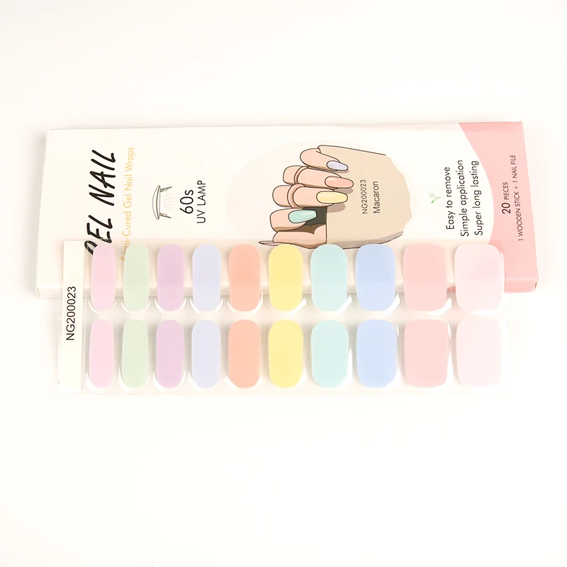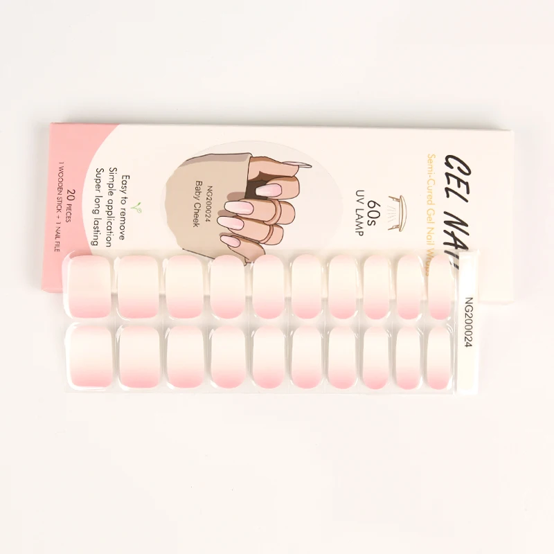 Pink semi cured Gel Nail Stickers with uv Light 20 Gel Nail Wraps