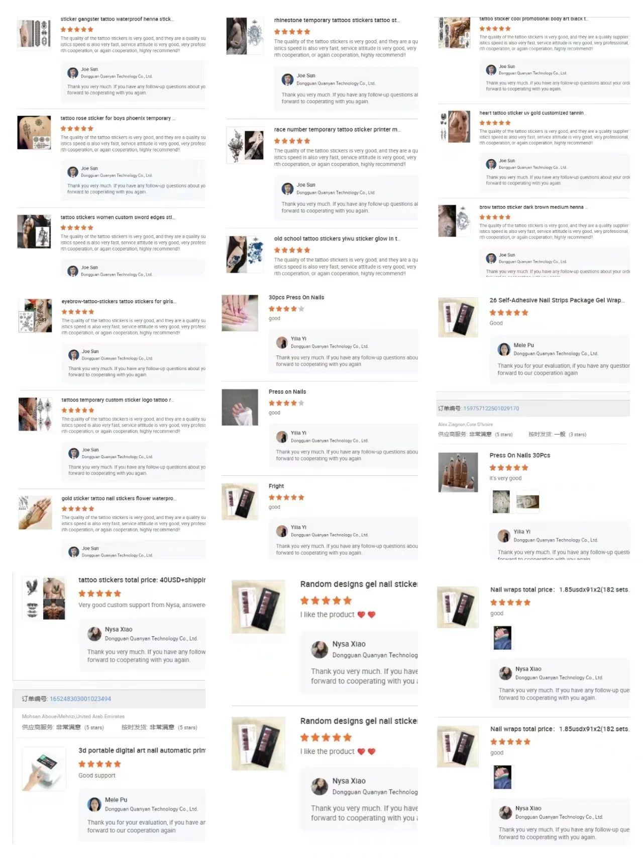 Dongguan quanyan technology co., LTD. Is a beauty makeup manufacturer which is engaged in development, design, production and sales. Professional production of all kinds of nail stickers, manicure decals and other crafts products. We always pay attention to the management and control of product quality, and constantly improve products to provide customers with the best products and services. We have a perfect management team and professional high-quality designers, each product has been our professional design and QC strict inspection, to ensure the high quality of our products. With standard screen printing production line, semi-automatic screen printing machine, and complete net drawing, plate making, film mulching, die-cutting, punching, glue drop, hot stamping and other supporting equipment, has a strong new product development ability, to achieve the design, proofing, production, post-processing and other one-stop services. In the face of continuous development and change of the market, "customer first", "technological innovation", "the best service" is the unswerving business philosophy of Quanyan, the company will ensure customer satisfaction, beyond customer expectations and continuous improvement and innovation. Looking forward to becoming your loyal partner!