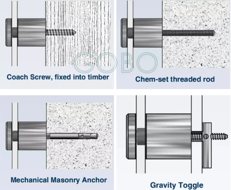 Standoff/Pin | Dia38mm, 42mm, 50.8mm | 304/316 Stainless Steel | Satin/Mirror/Powder Coated/Electroplated | Round Edge | |||