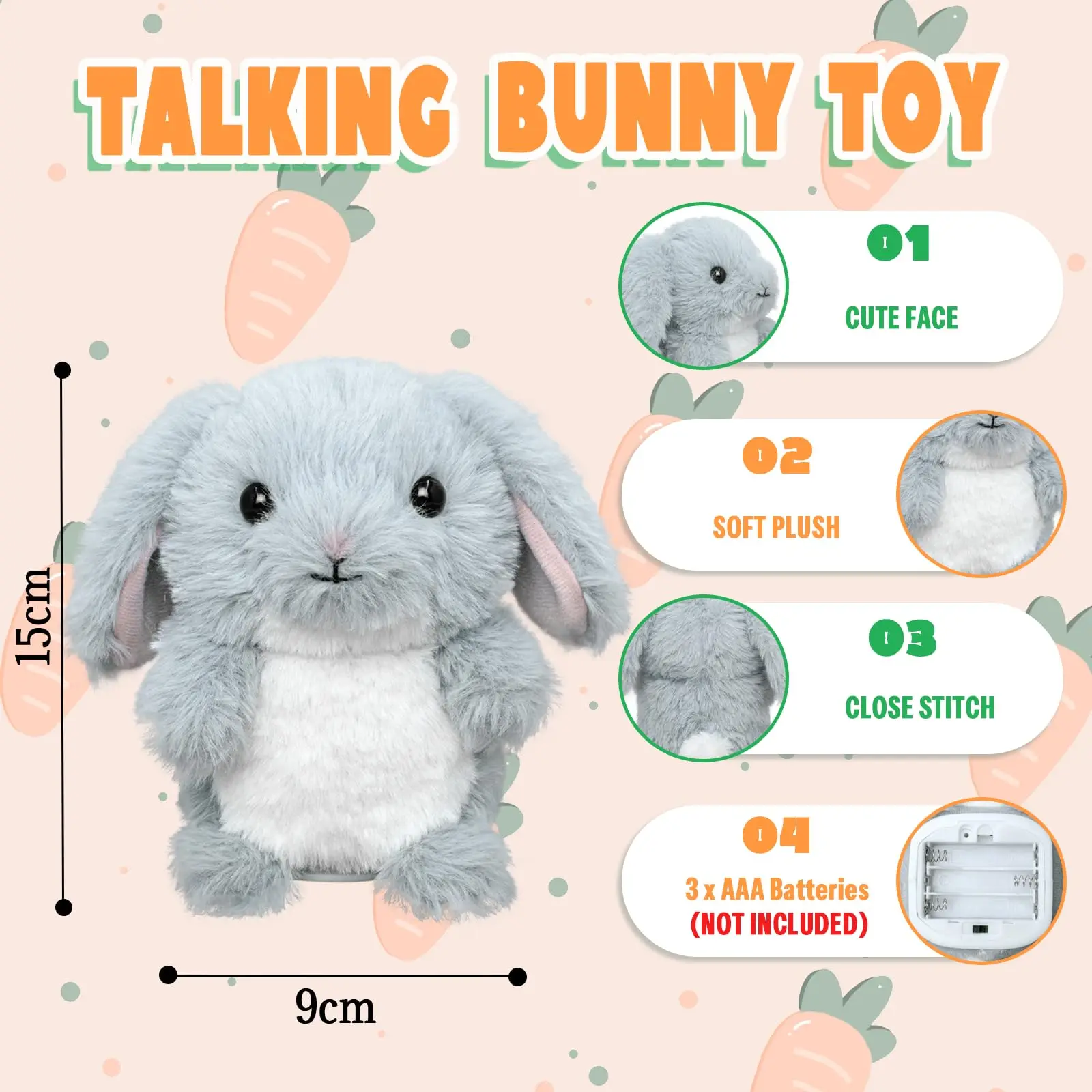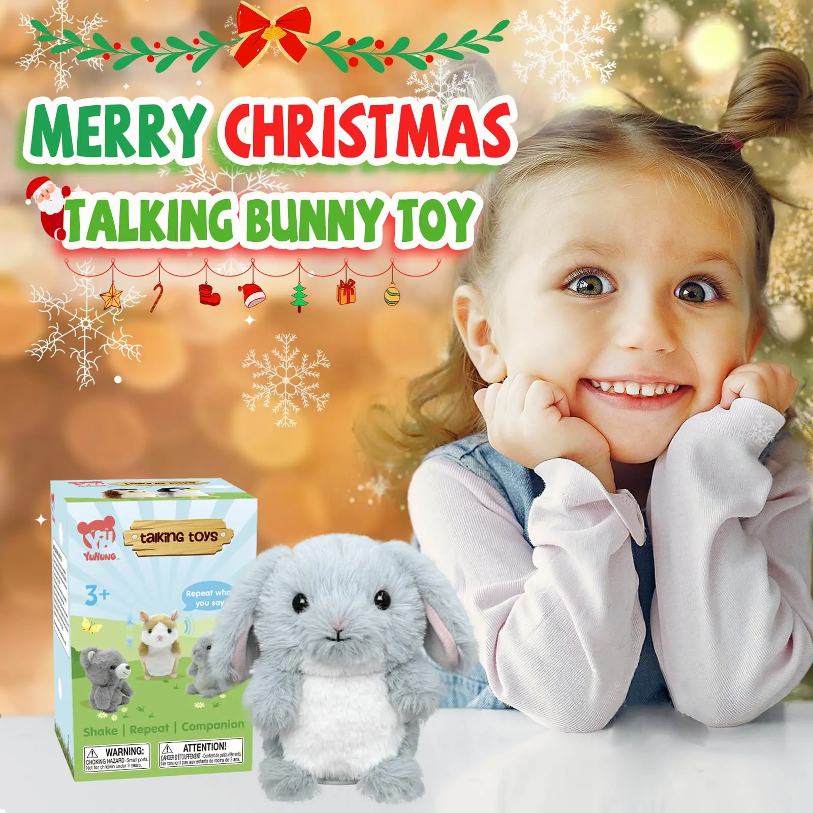 YH YUHUNG Talking Bunny Plush Toy, Electronic Plush Toys Talking Rabbit Repeats What You Say, Easter Basket Stuffers for Toddler