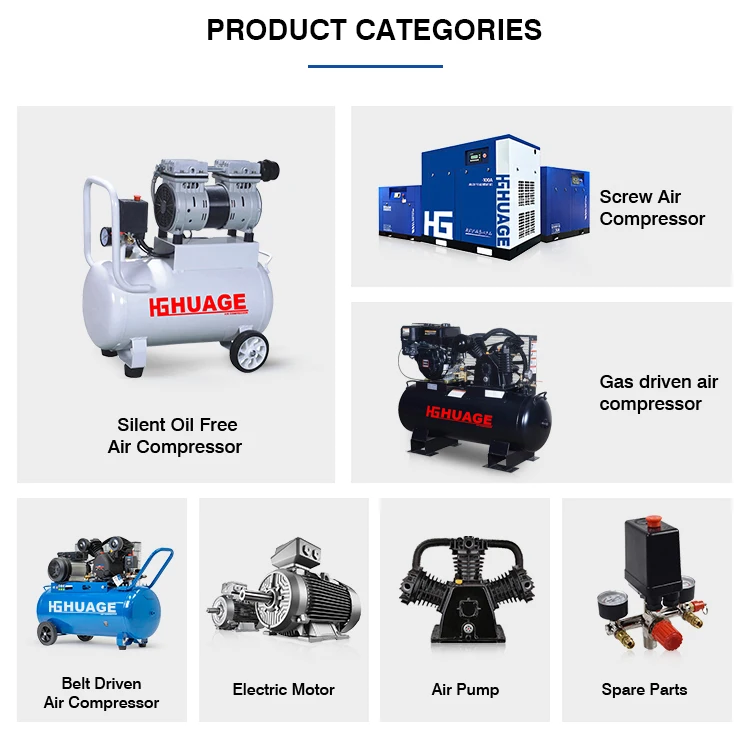 Q1. Are you a factory? A:Yes. We are a factory with more than 15 years manufacturing experience. Q2: Why to choose HUAGE? A: We are professional for air compressor more than 20 years. We know how to make the compressor best. Good quality at a reasonable price. Q3. Is OEM service available? A: Of course. We have many years experience of OEM service. Q4. Can I get a sample to check the quality? A: We are glad to offer you samples for test. Leave us message of the item you want or your requirements. We will reply you within 24 hours in working time. Q5: Warranty terms of your machine? A: One year warranty for the machine and technical support according to your needs. Q6: Which payment term can you accept? A: 30% T/T in advanced, 70% T/T against the B/L copy. Q7: Which trade term can you accept? A: Available trade terms: FOB, CIF, CFR, EXW, CPT, etc
