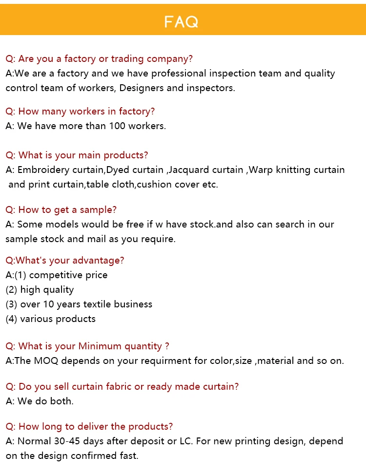 Packing | 1. For Fabrics: double Fold rolling , four fold rolling or rolled on strong tubes packing with label and sticker | ||||
