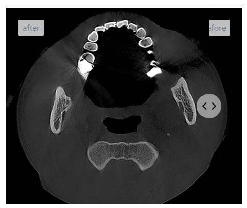 Metal Artifact Correction 1. The unique metal artifact removal function of HiRes3D Series can reduce the influence of the metal or other high density materials, and significantly improve the image quality.
