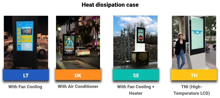 Working temperature | -30°C ~ 60°C(with air conditioner) -10°C ~55°C(with fan cooling) -30°C ~ 55°C(with fan cooling+heater) | -30°C ~ 60°C(with air conditioner) -10°C ~55°C(with fan cooling) -30°C ~ 55°C(with fan cooling+heater) | |||