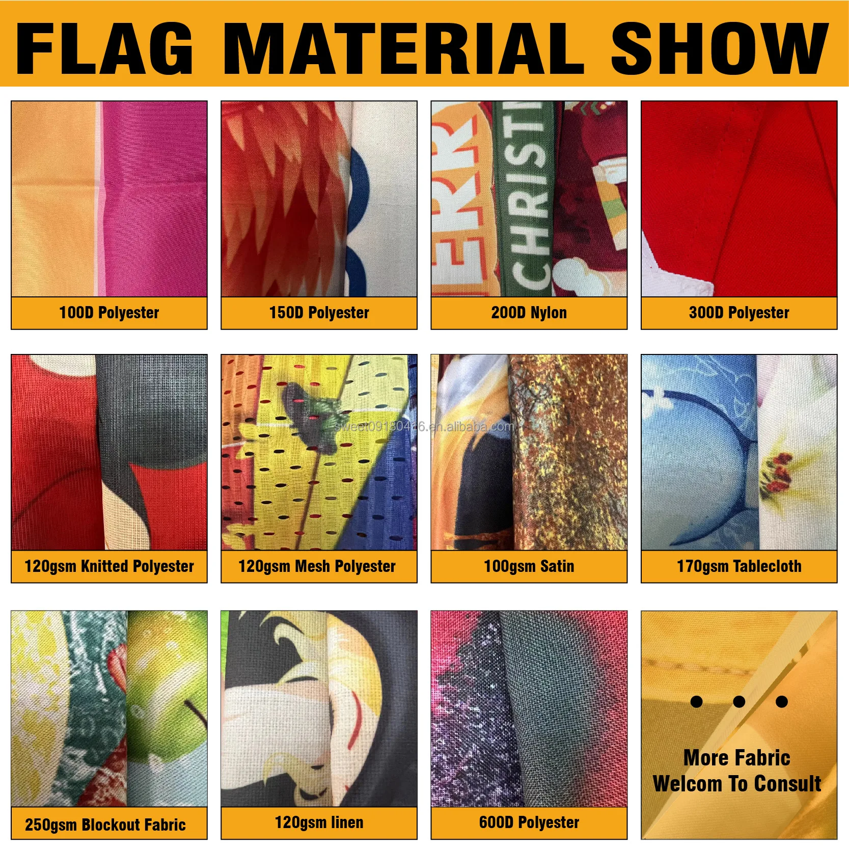 Material | 1) 100% polyester | 2) double sided print fabric | |
