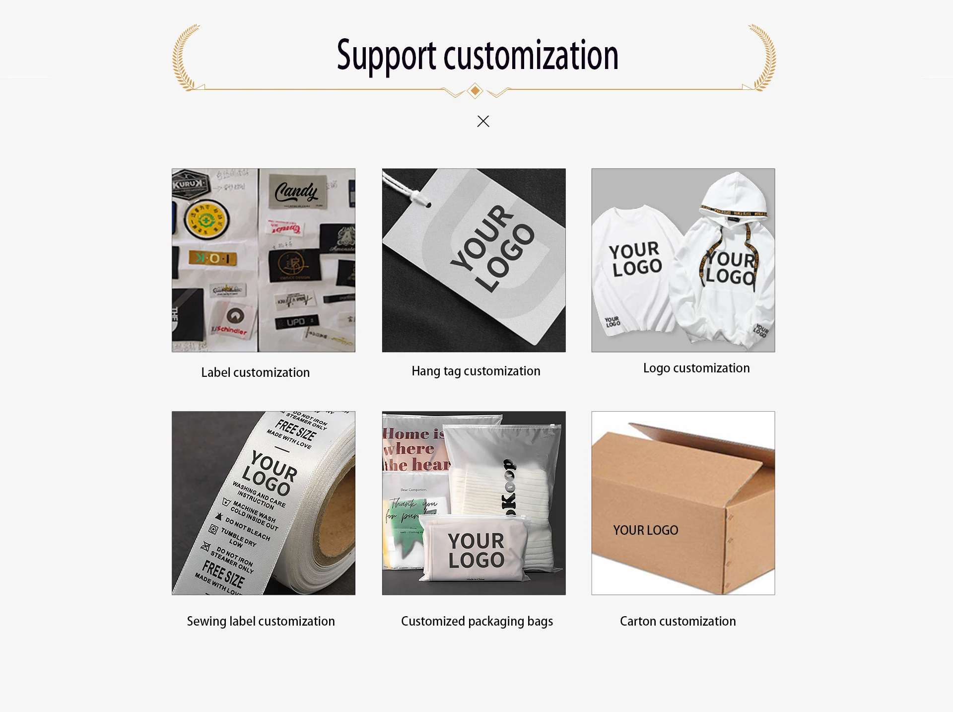 2.Q:Could I do customized order with my own design, brand,logo, labels and tags? | ||||||||