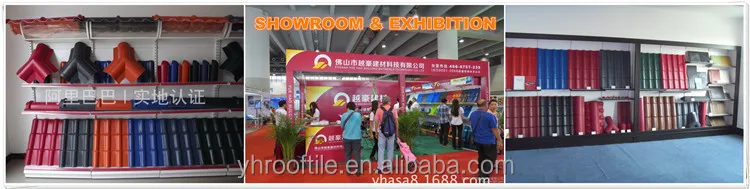 We have almost 20years solid factory experies,with latest equipment and technology,all our products have passed the evaluation of ISO9001 Quality System Certification.Besides, the Yuehao ASA tile has gained the title of Famous Brand in Guangdong Province. With the high quality and proffessional production/service team,we are the authorized supplier of roofing tiles for many successful projects in China, Mid East,South America etc..