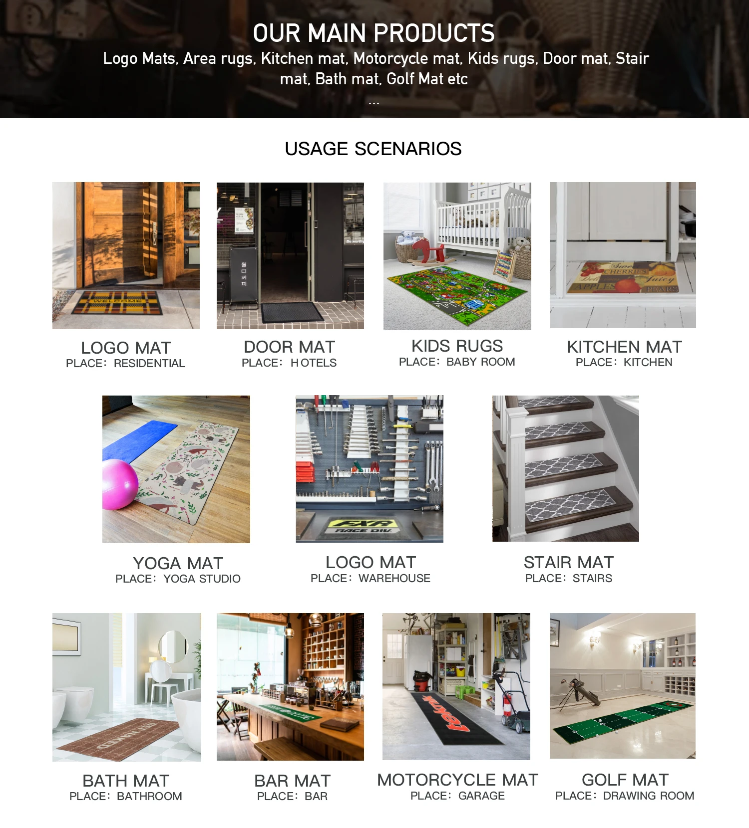 50x300cm, 40x300cm, 50x250cm and other customized sizes.