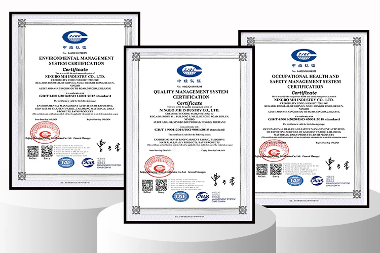 MH has certificates of ISO 9001:2015, ISO 14001:2015, ISO 45001:2018.
