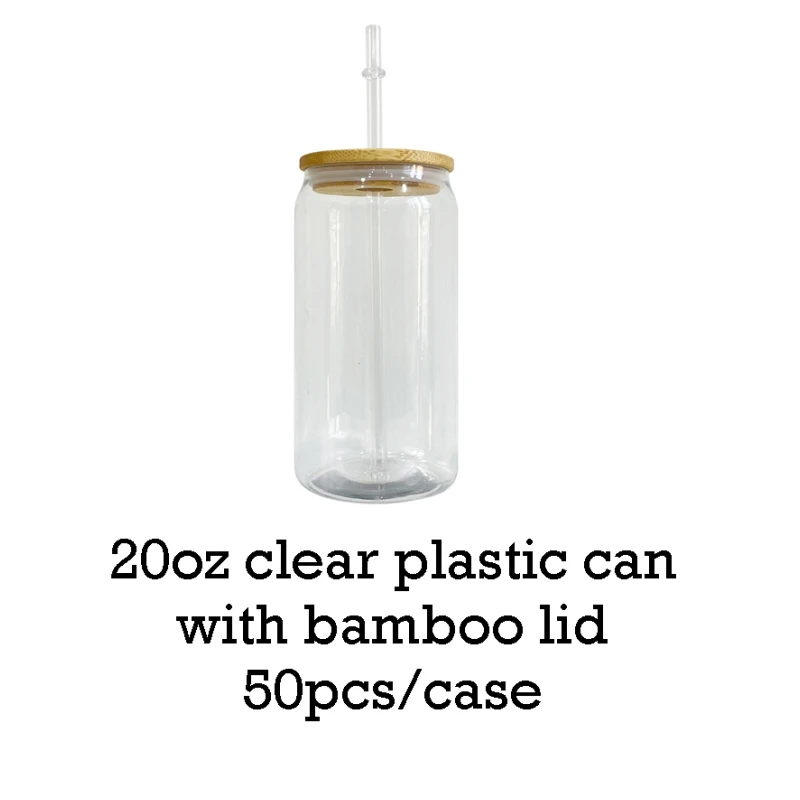 Wholesale Bulk Can Shaped Drinkware 20oz 16oz Acrylic Plastic Tumbler Can With Bamboo Lids Plastic Tumbler For UV DTF Wraps