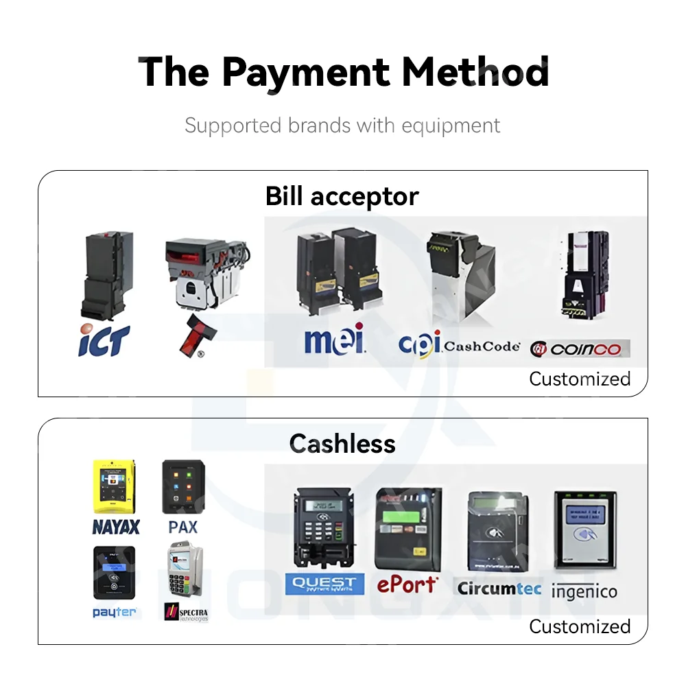 3. Multiple payment methods Different payment methods are acceptable, including card payment, coin money and cash money with change function. The Nayax system can accept credit card, debit card, Apple pay and Google pay and so on. |